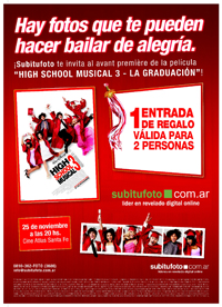 Te invitamos a ver High School Musical 3 - La Graduación, el martes 25 de noviembre a las 20 hs en el Cine Atlas Santa Fé, en Santa Fé 2015.